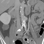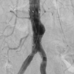This was treated by interventional radiology using pinhole techniques. A small access was placed in the right groin artery (right CFA) and repair was done endovascularly using a Medtronic Renu cuff. The device was placed percutaneously and the access site closed using Proglide closure device by Abbott.